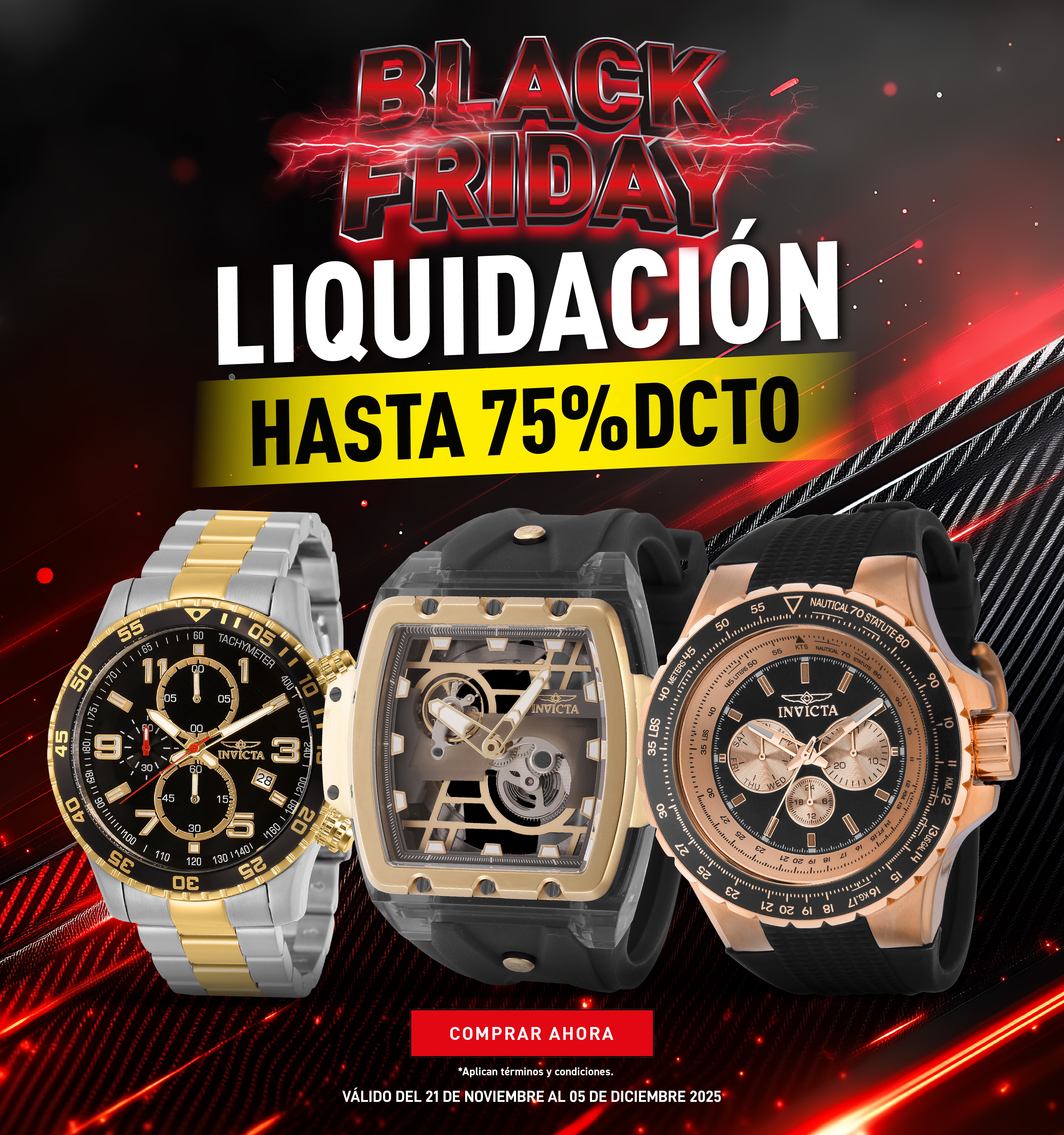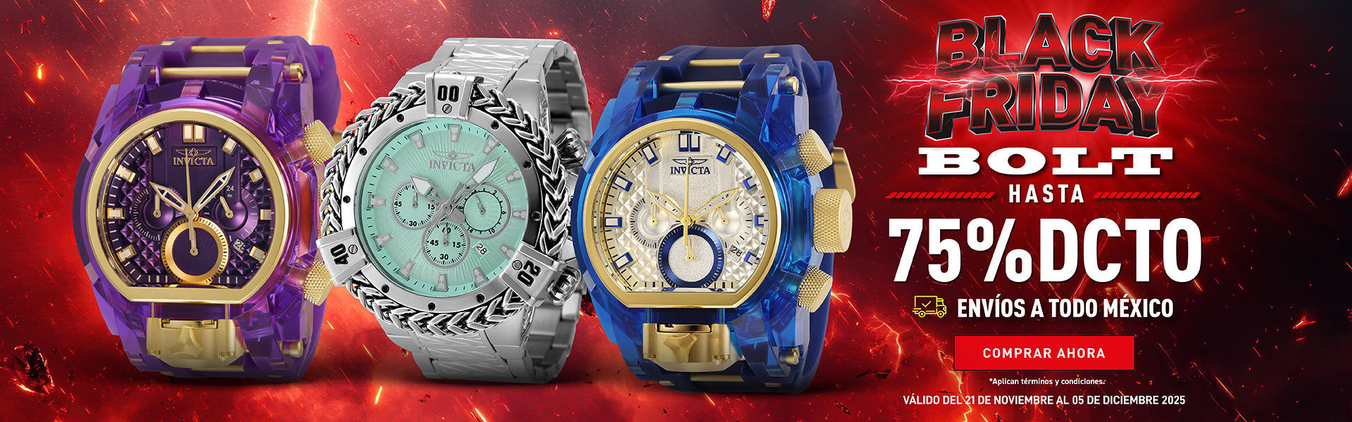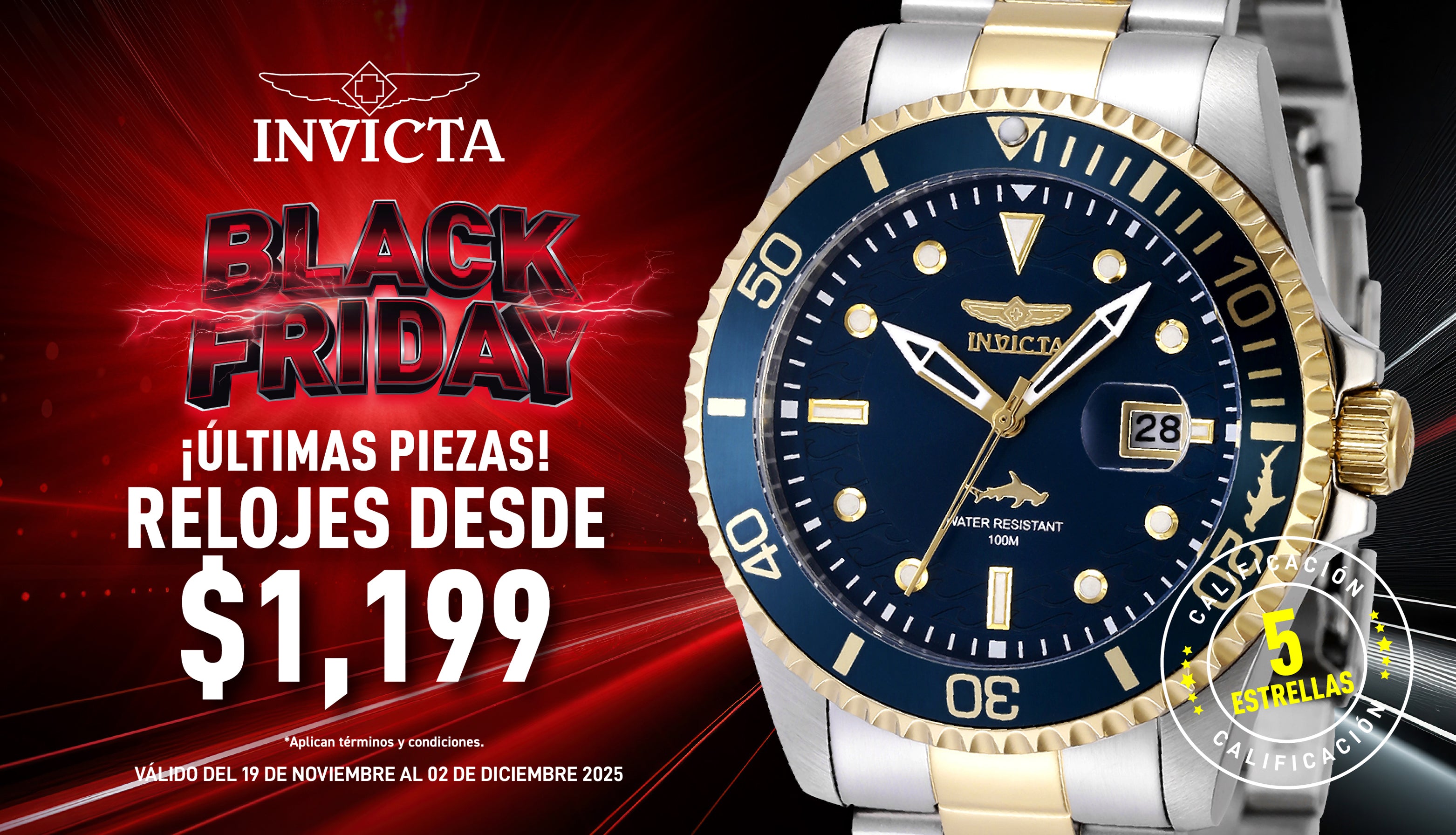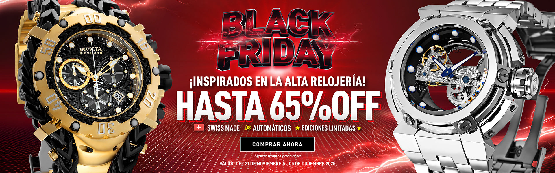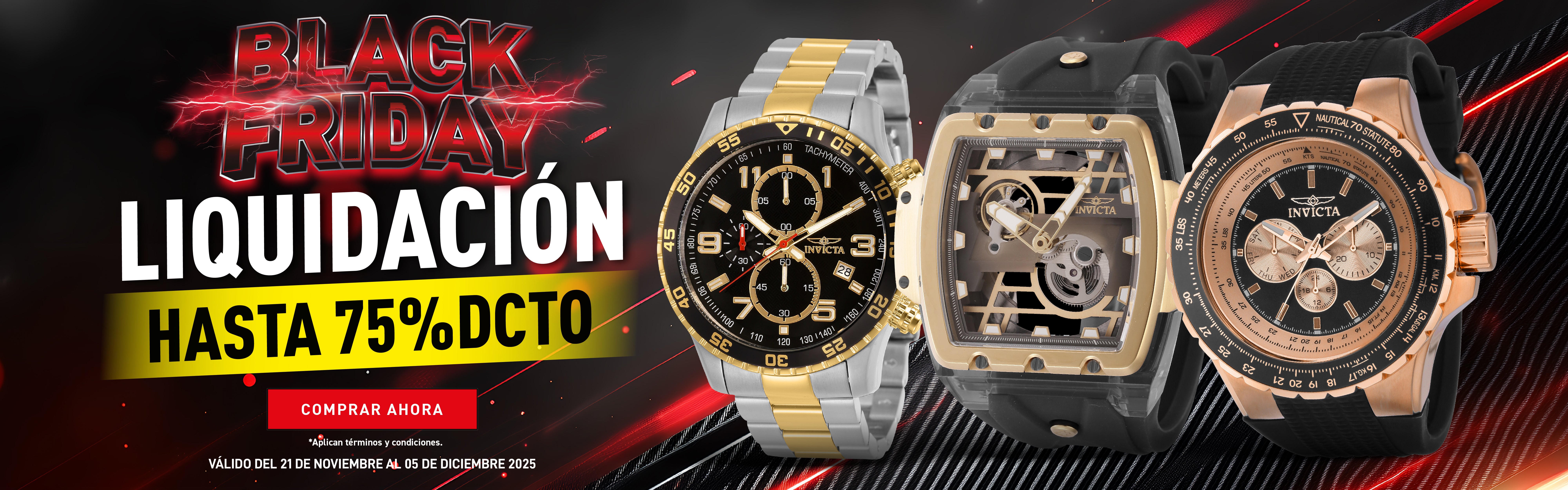 Con más de 100 tiendas alrededor del mundo, Invicta te ofrece una experiencia de compra en línea inigualable. Explora nuestra amplia selección de relojes y accesorios, desde los modelos más recientes hasta los estilos clásicos, todos a precios imbatibles gracias a nuestras Ofertas exclusivas. ¡Visítanos y aprovecha nuestras ofertas irresistibles hoy mismo!