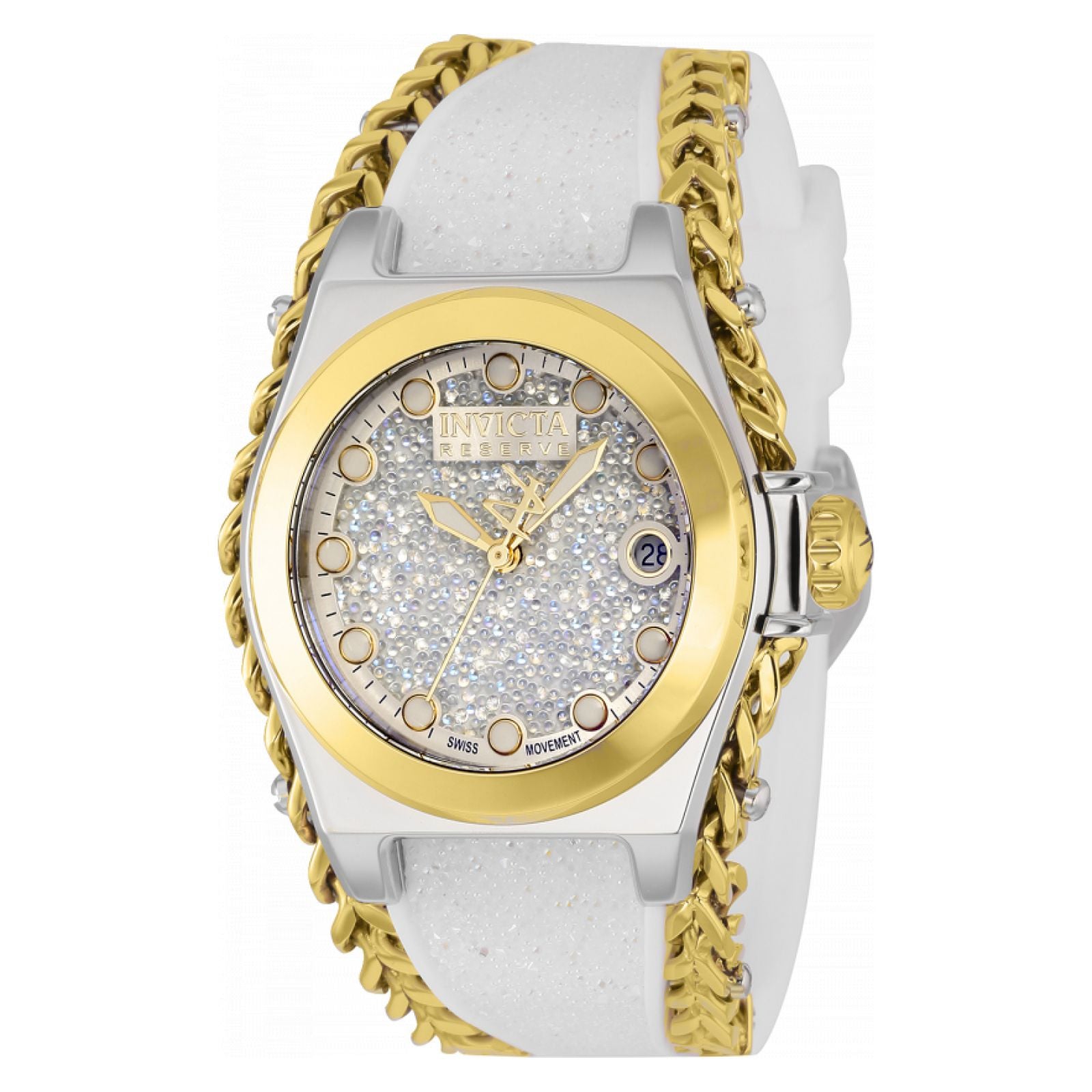 Reloj invicta 35733 gladiator para dama, tamaño de la caja 41.1 mm de acero inoxidable, tamaño del pulso 180 mm de tela, silicona, acero inoxidable, color oro blanco, pulso de 180 mm, resistencia al agua hasta 200 metros