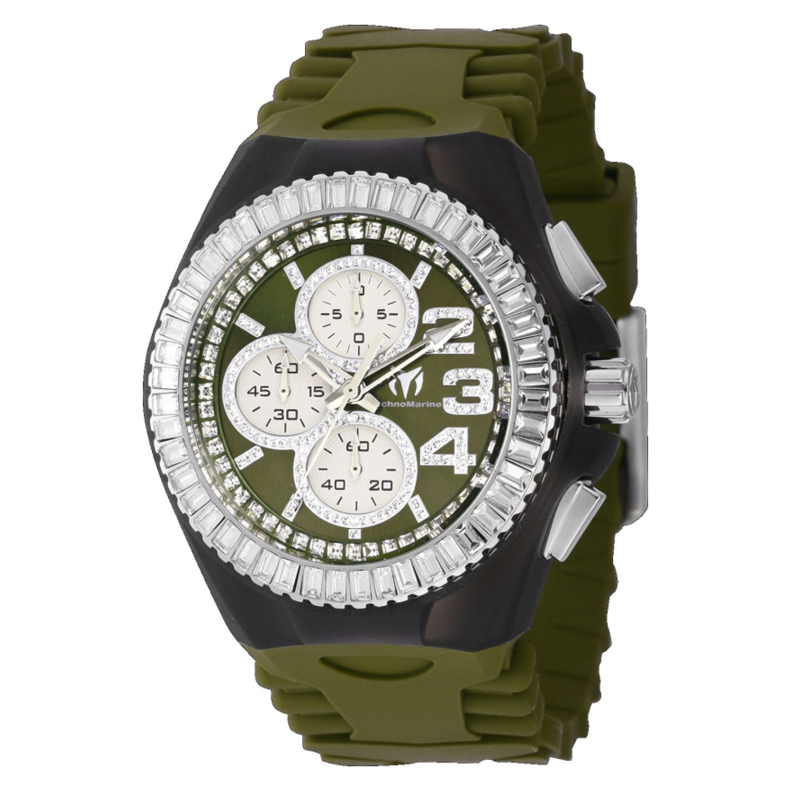 Reloj technomarine tm 121183 cruise para hombres, tamaño de la caja 45 mm de acero inoxidable, tamaño del pulso 205 mm de silicona, color verde, pulso de 205 mm, resistencia al agua hasta 200 metros