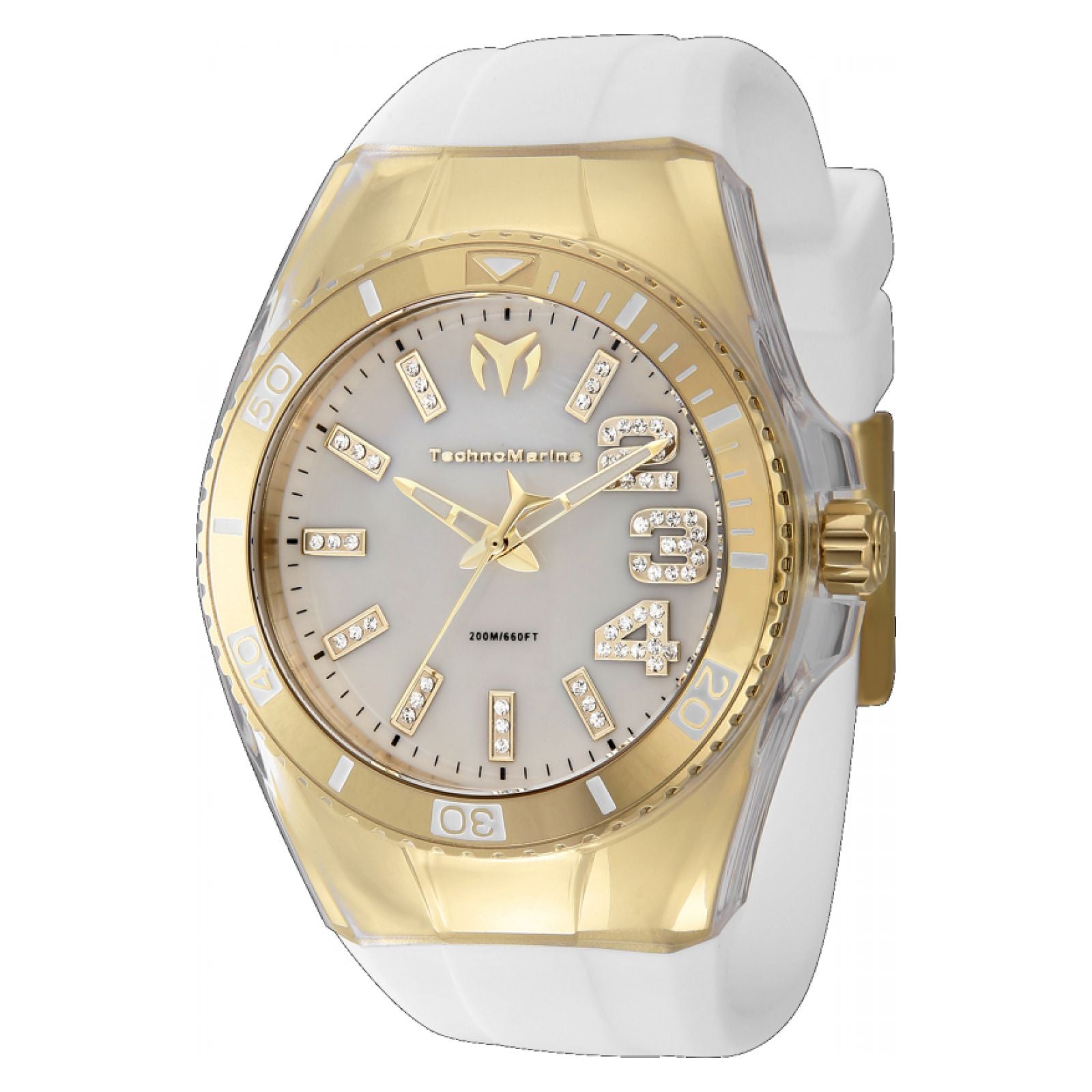 Reloj technomarine mt 121244 cruise para dama, tamaño de la caja 42 mm de acero inoxidable, tamaño del pulso 210 mm de silicona, color blanco, pulso de 210 mm, resistencia al agua hasta 100 metros