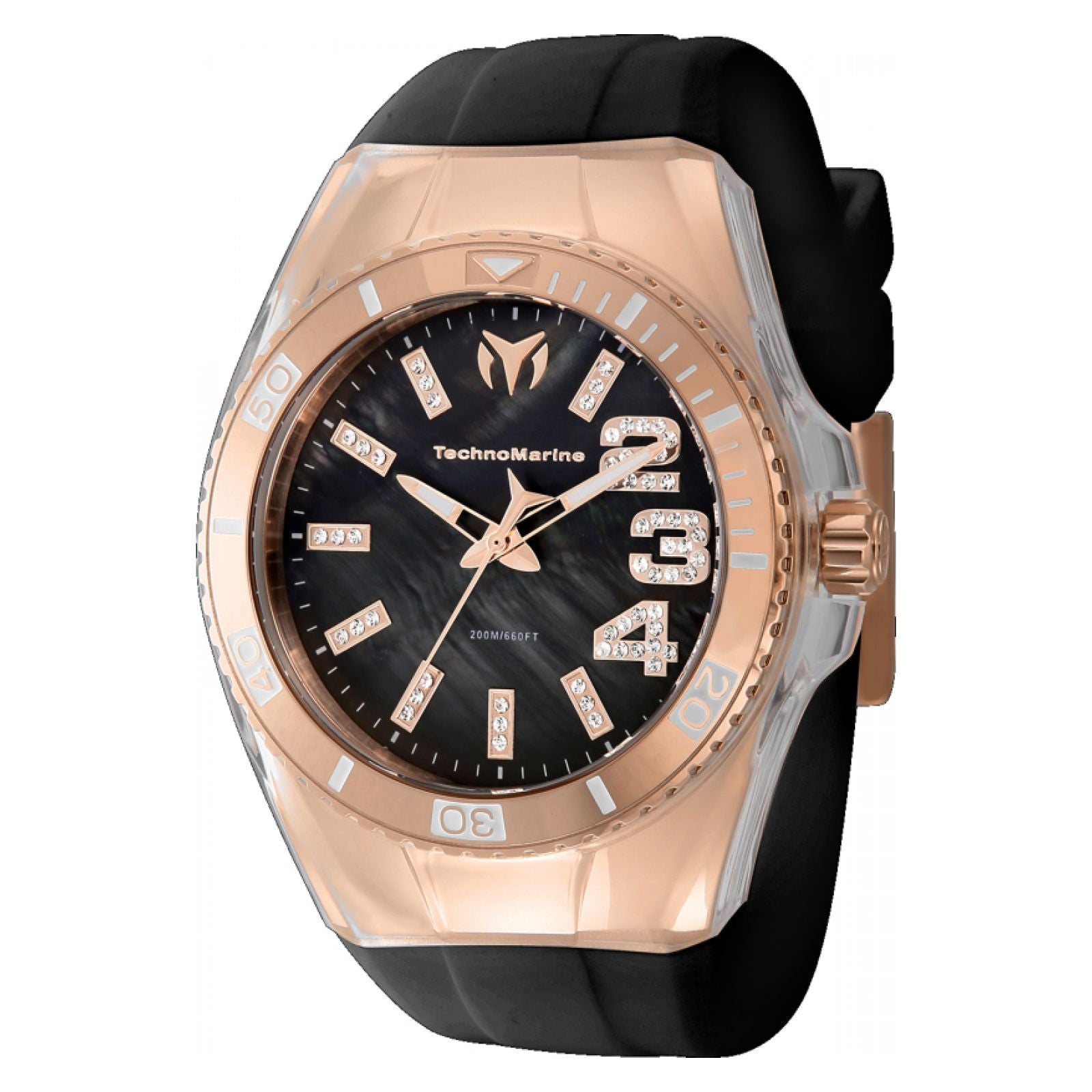 Reloj technomarine mt 121247 cruise para dama, tamaño de la caja 44.5 mm de acero inoxidable, tamaño del pulso 210 mm de silicona, color negro, pulso de 210 mm, resistencia al agua hasta 100 metros