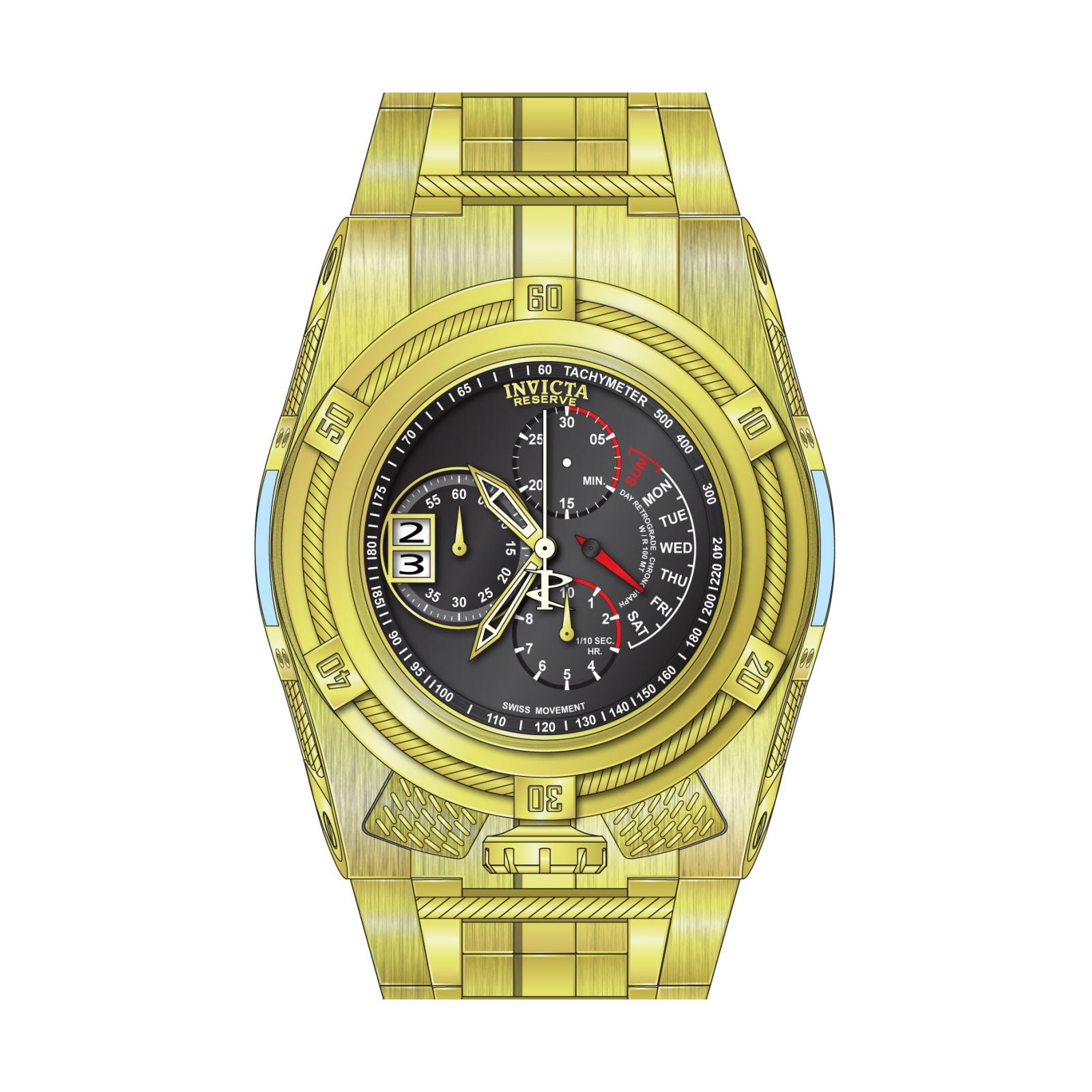 Reloj invicta 16956 bolt para hombre, tamaño de la caja 56.3 mm de acero inoxidable, tamaño del pulso 210 mm de acero inoxidable, color oro, pulso de 210 mm, resistencia al agua hasta 100 metros