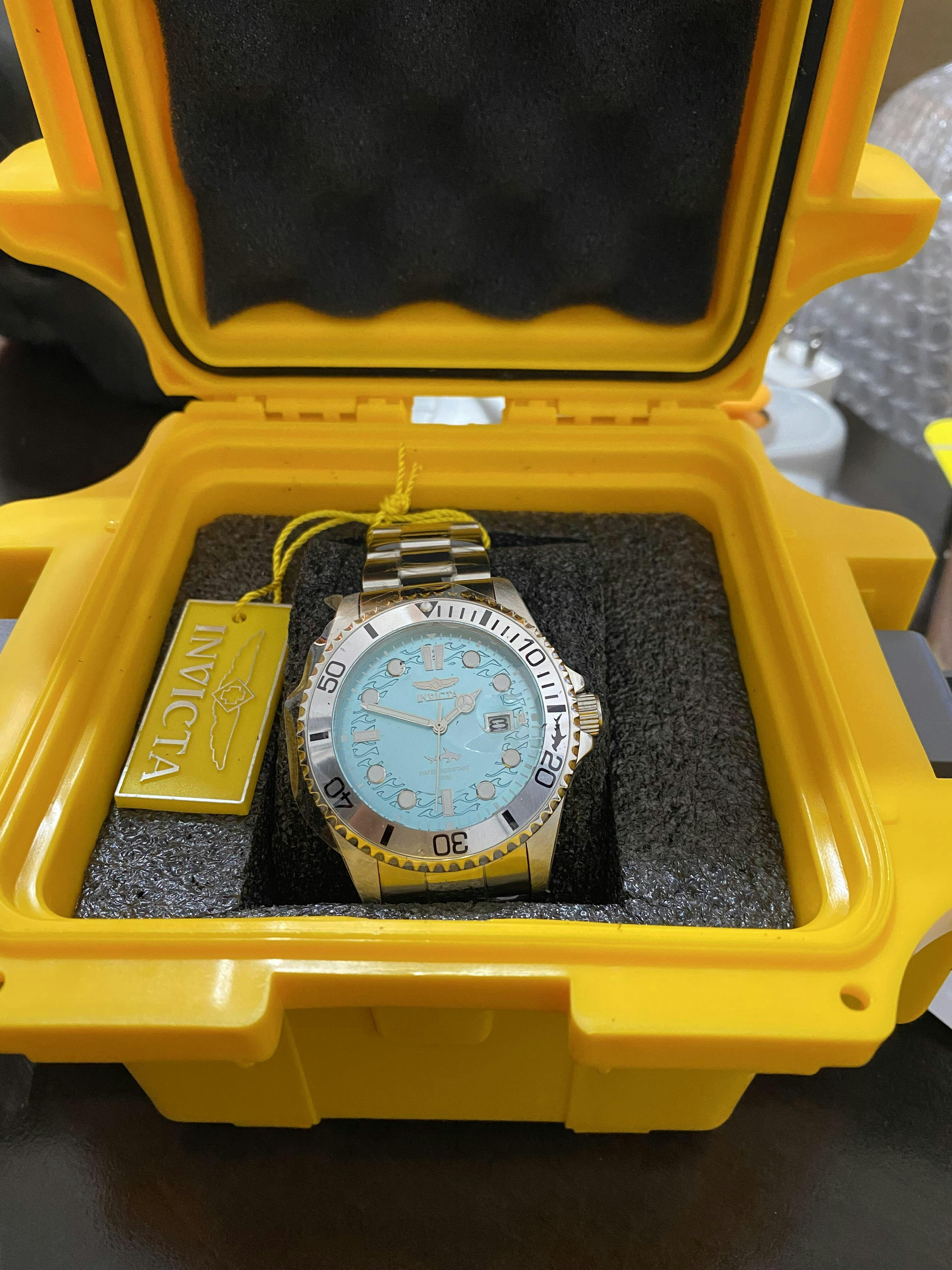 Muy buena compra , llegó muy bien empacado ,y en los 3 días indicados , el Reloj azul oro quarzo me gustó mucho se le ve y se siente de buena calidad y estilo ,creo que están a la altura de otras buenas marcas de otros relojes, la esfera , caja , y correa se ven y se sienten sólidos y bien chapeados de oro bien sólidos, espero disfrutar mi invicta Master of the oceans, y espero me perdure en buena condición claro dependiendo de los cuidados indicados que le dé propiamente al Reloj azul oro, pues es todo mi comentario ,solo añadir mos gracias a invicta por su muy buena oferta, espero algún día volver a comprar otro reloj o producto invicta, gracias.